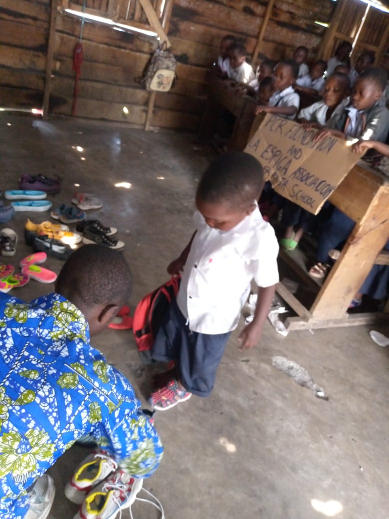 El pasado sábado 1 de octubre nuestros compañeros/as de la Fundación Peace & Conflict Resolution (PCR) en Bucavu, hicieron el reparto de los zapatos adquiridos gracias a las donaciones recaudadas por la Asociación Holística la Espiga en la campaña “Zapatos para la #VueltaAlCole”.